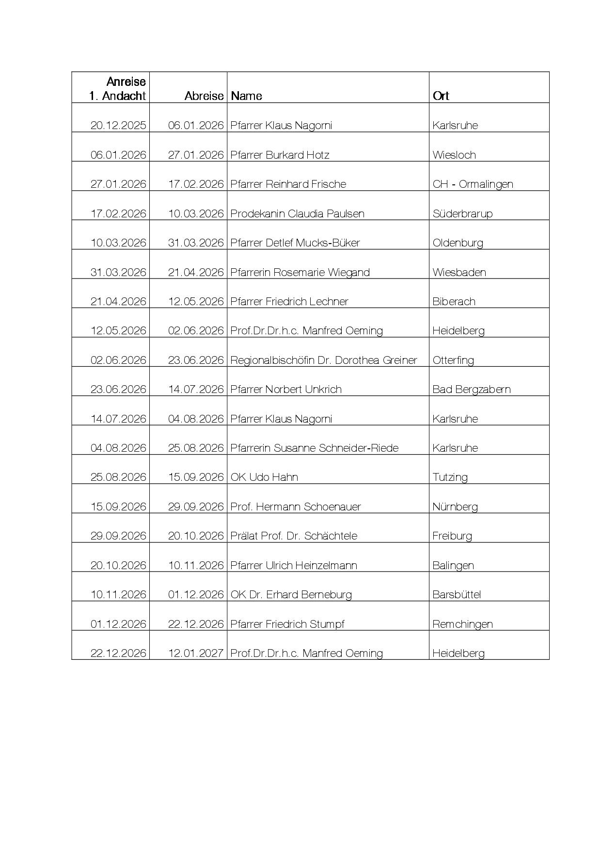 Unsere Kurprediger in 2026